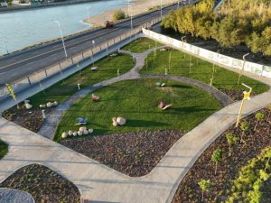 Президент саябағы мен «Астана» шағын ауданын байланыстыру үшін Сырдария өзені үстінен жаяу жүргіншілер көпірі түседі.