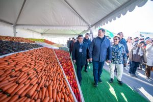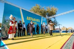 блыс әкімі Нұрлыбек Нәлібаев егін жинау науқанының аяқталуына орай «Алтын күз-2025» мерекесі аясында облыс орталығында ұйымдастырылған ауыл шаруашылығы өнімдерінің жәрмеңкесін аралап шықты.