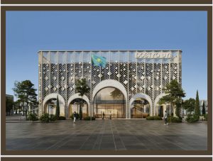 Ғимарат ашық кеңістік астында түрлі форумдар, лекциялар, көрмелер, концерттер және т.б. іс-шараларды өткізуге арналған. Күн сәулесінен қорғайтын өрнектері бар сәндік панельдермен перфорацияланған. Офис бөлмелері екінші және үшінші қабаттарда орналасады.