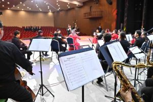 Мемлекет басшысы көрермен залын аралап көріп, облыстық симфониялық оркестрдің дайындық барысын тамашалады.