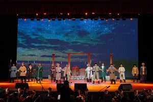 Кейіпкердің ой тереңдігін, сөзінің өткірлігін, тіл шеберлігін, азамат ретіндегі беделін филармония әртістері негізгі қалпын сақтап, асқан шеберлікпен көрермен қауымға жеткізді. Ерекше классика кешін халықаралық және республикалық конкурстардың лауреаты Рустам Рысмағамбетовтің дирижерлік етуімен облыстық симфония оркестрі сүйемелдеді. Оркестрдің көркемдік жетекшісі және бас дирижері – Қазақстанның еңбек сіңірген қайраткері, профессор Мүсілім Әмзе. Тұтас сахналанған операға аралас хор ұжымы (көркемдік жетекшісі – А.Қуаныш), «Томирис» би ансамблі (көркемдік жетекшісі – халықаралық және республикалық конкурстардың лауреаты М. Тойбазарова), «Ai-Aru» заманауи би ансамблі (көркемдік жетекшісі – халықаралық және республикалық конкурстардың лауреаты З.Стықбаева), «Әдемі» балалар музыкалық театр-студиясы, (көркемдік жетекшісі – Қ. Боранбаев) және филармония солистері қатысып, көрерменге маңызы терең, философияға толы мәдени демалыс сыйлады.