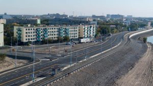 Қорқыт ата әуежайының жаңа терминалынан бастап Гагарин көпіріне дейінгі 27,3 шақырым жол төрт жолақты болып салынды.